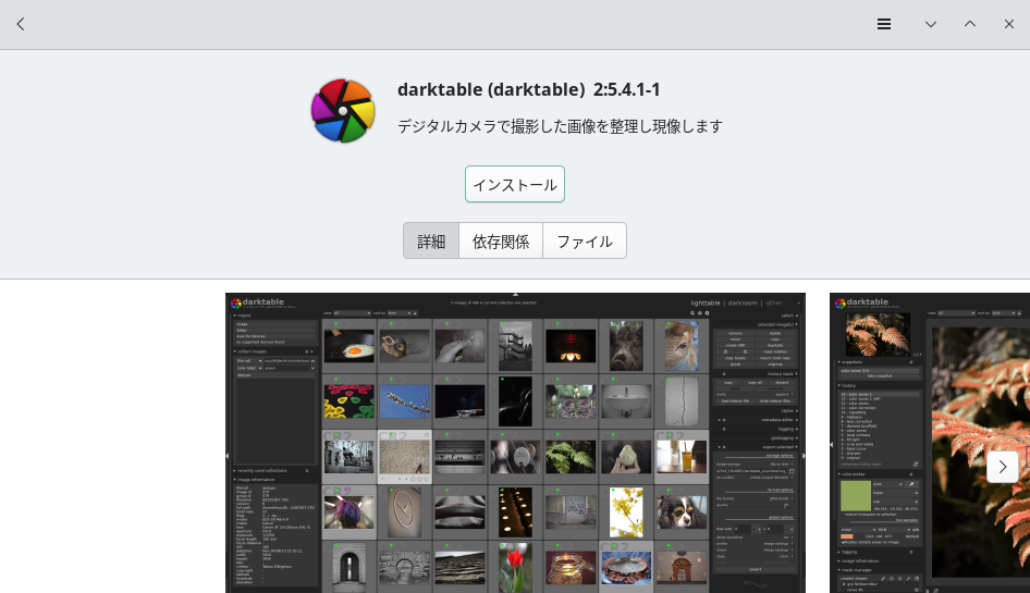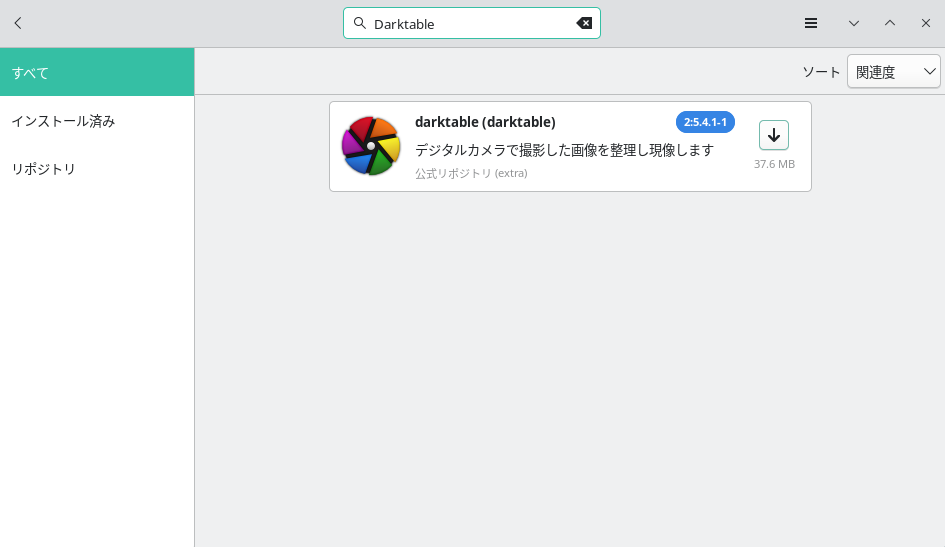 まずはパッケージマネージャからDarktableを検索しましょう。