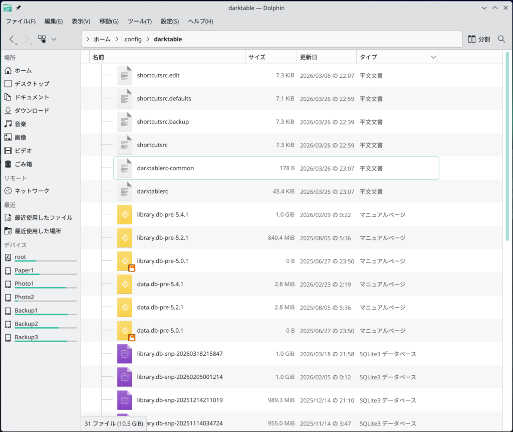 DarktableはRAWやJpegといった写真ファイルを管理・現像するアプリケーションで、写真そのものはユーザが準備してカタログ登録した上で運用しますが、時々アプリケーションを構成するファイル自体の保存場所についても意識する必要があります。例えば、キャッシュやデータベースの保存場所などはなるべく高速なストレージにすることで動作の快適性が向上する可能性があるためです。