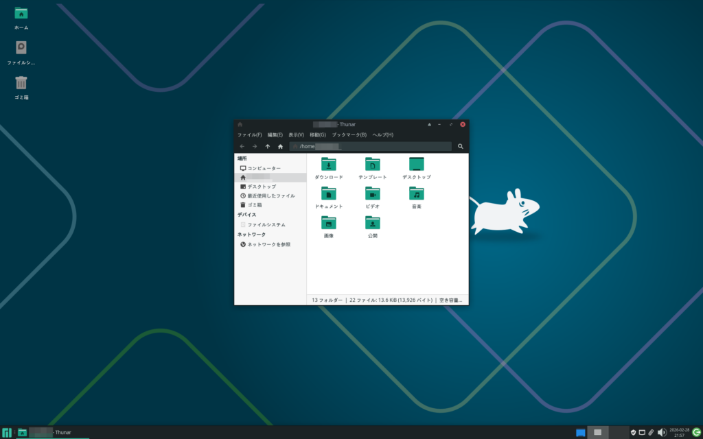 Manjaro Xfceに初期インストールされているファイルマネージャは、Xfce標準のファイルマネージャであるThunarです。