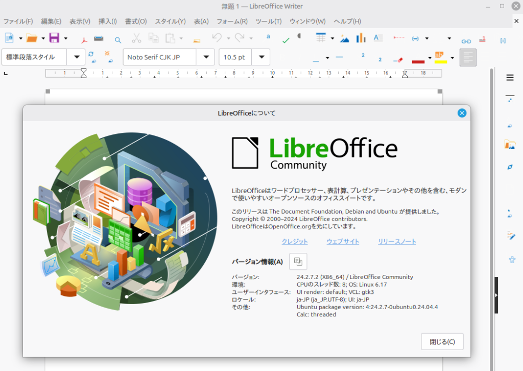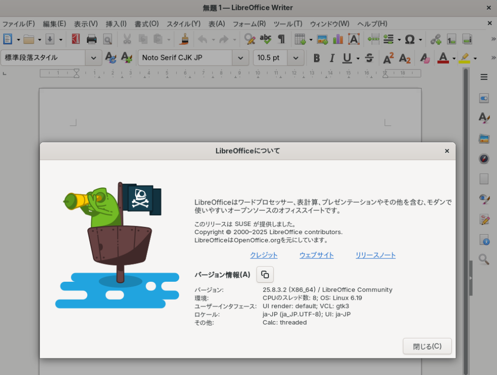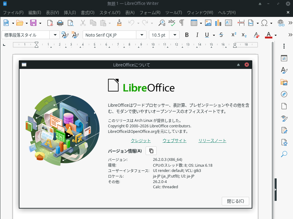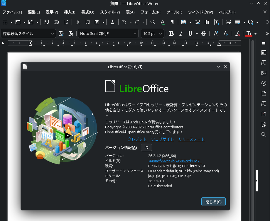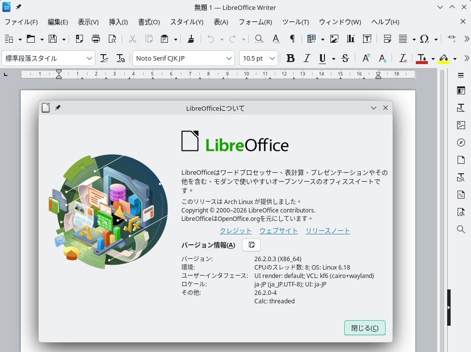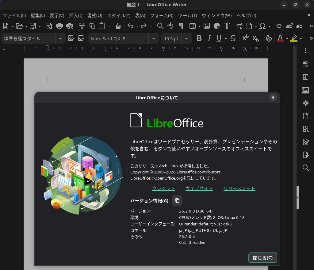 今回は、Manjaro 26.0.3 KDE上のLibreOffice 26.2.0.3を例に解説を進めていきます。