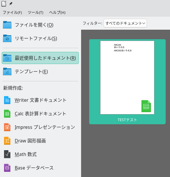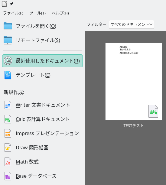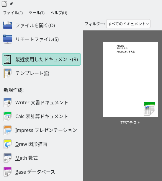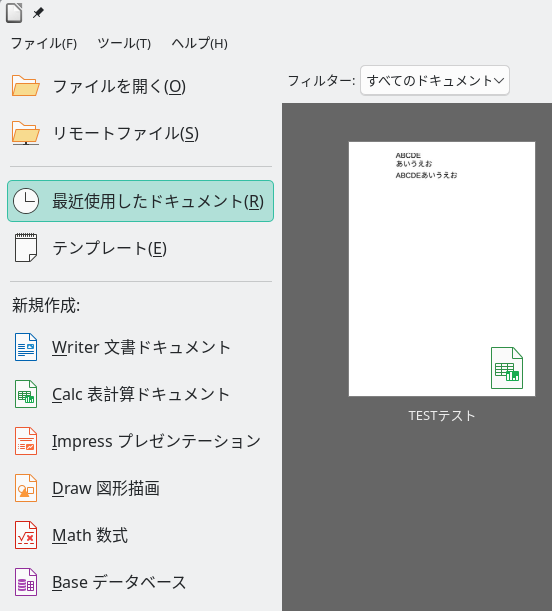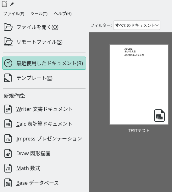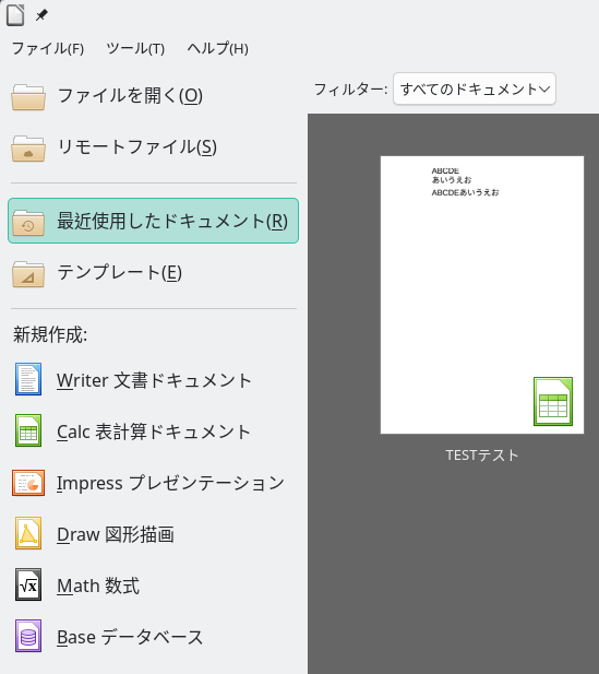 ちなみに、LibreOfficeランチャー上の各ショートカットアイコンも以下のように変わります。