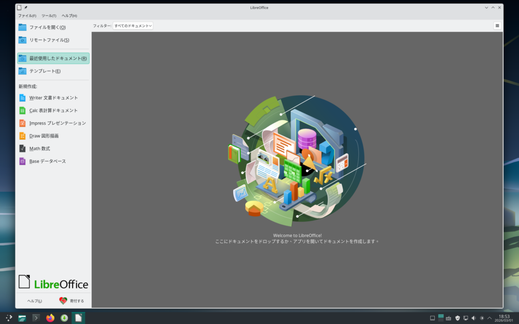 | LibreOffice | 以下の各ソフトウェアへのランチャー |