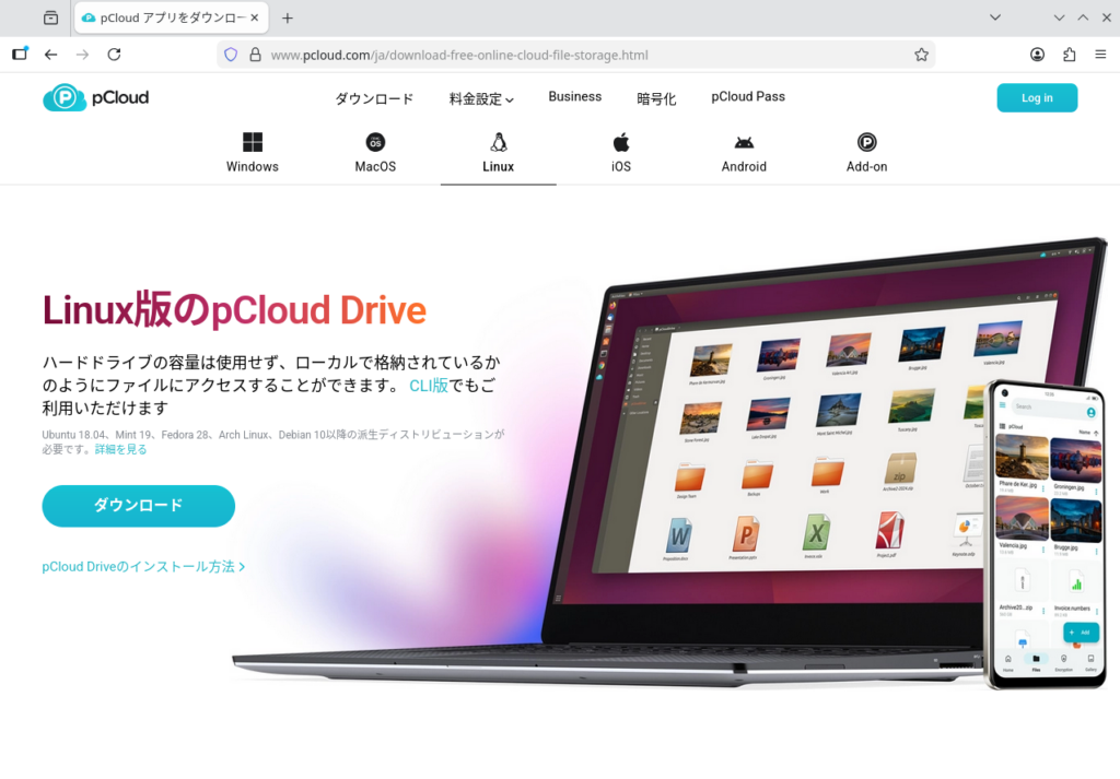 オンラインストレージサービス、pCloudのインストール手順について解説します。
