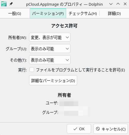 Fig.1-4: pCloud.AppImageのプロパティ(初期状態)