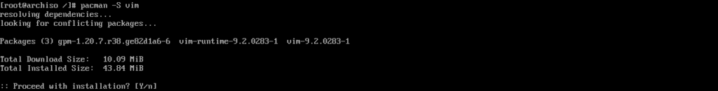 Fig.3-1: pacmanパッケージマネージャからvimをインストール開始