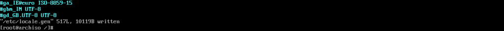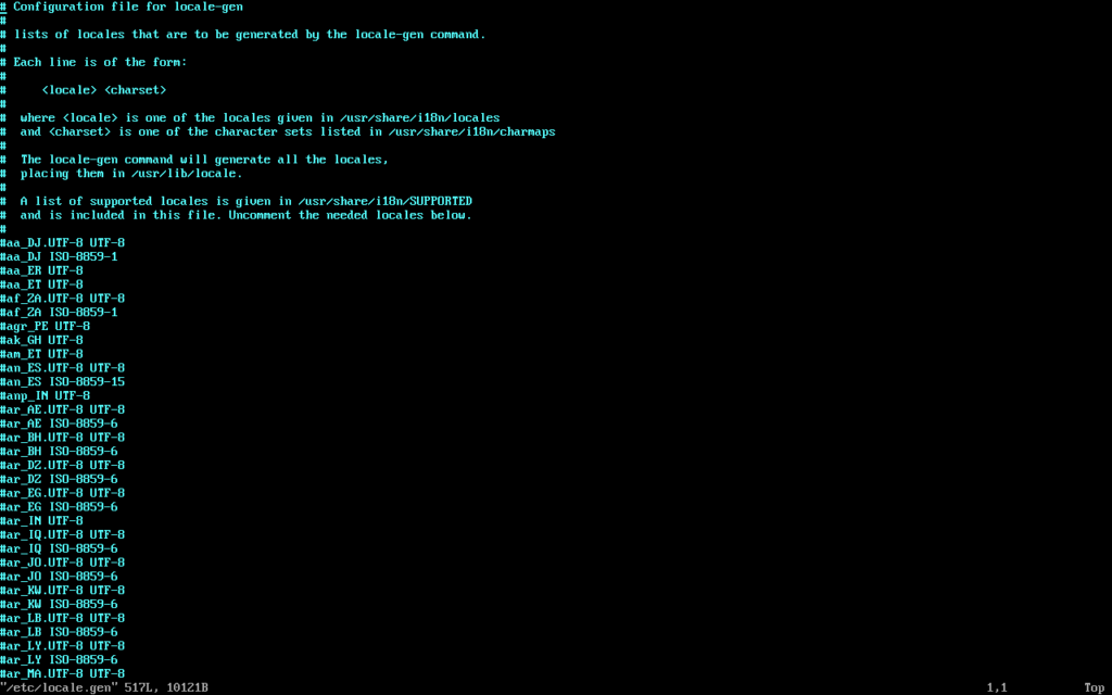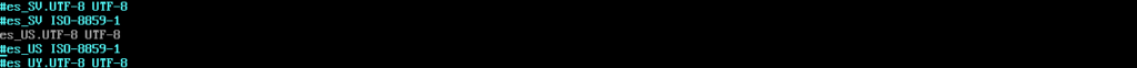 また、最終的に使用するのが日本ロケールだとしても、インストールを進める過程では英語圏ロケールも有効化しておく必要がありますので、es_US.UTF-8 UTF-8もアンコメントしてください。