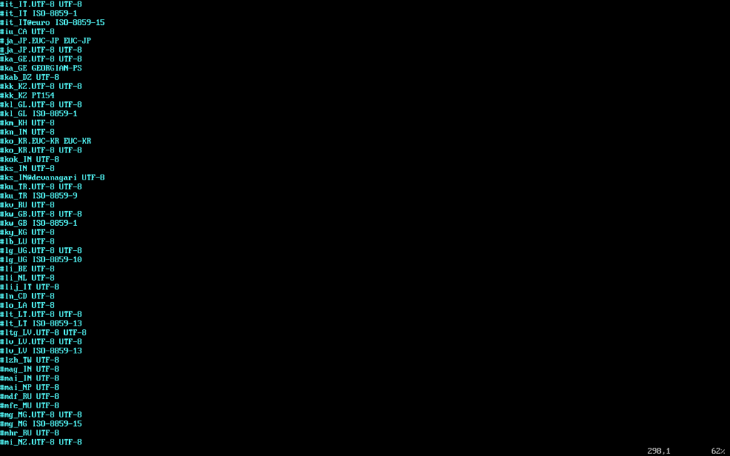 vimテキストエディタ自体の解説は本記事の趣旨から外れるので割愛させていただきます。まずは下方向にスクロールを進めて、「#ja_JP.UTF-8 UTF-8」という行を探しましょう。