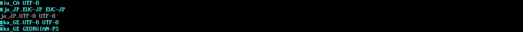 この日本ロケールを選択肢として有効化するため、行頭のコメントアウト記号#を削除します。