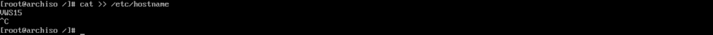 コンピュータ名を示す、ホストネームファイルhostnameを新規作成し、同時にコンピュータ名を書き込みます。