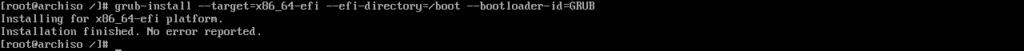 grub-install --target=x86_64-efi --efi-directory=/boot --bootloader-id=GRUB