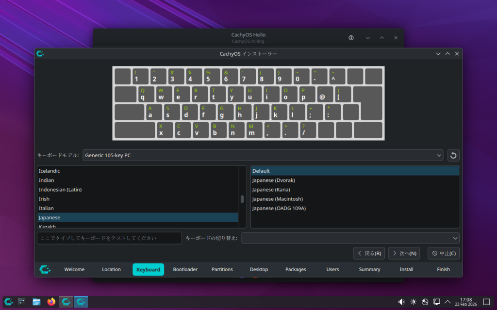 既にJapanese / Defaultになっているので、そのままボタン「次へ」を押して進めます。
