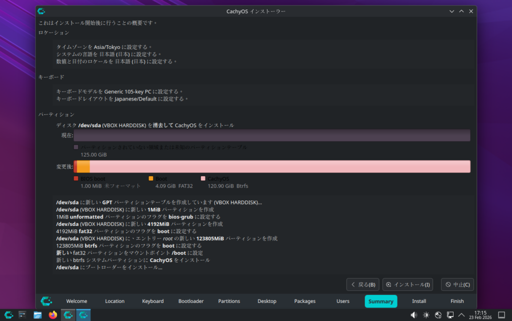 ここまでの設定内容一覧が表示され、インストール実行前の最終確認が行われます。