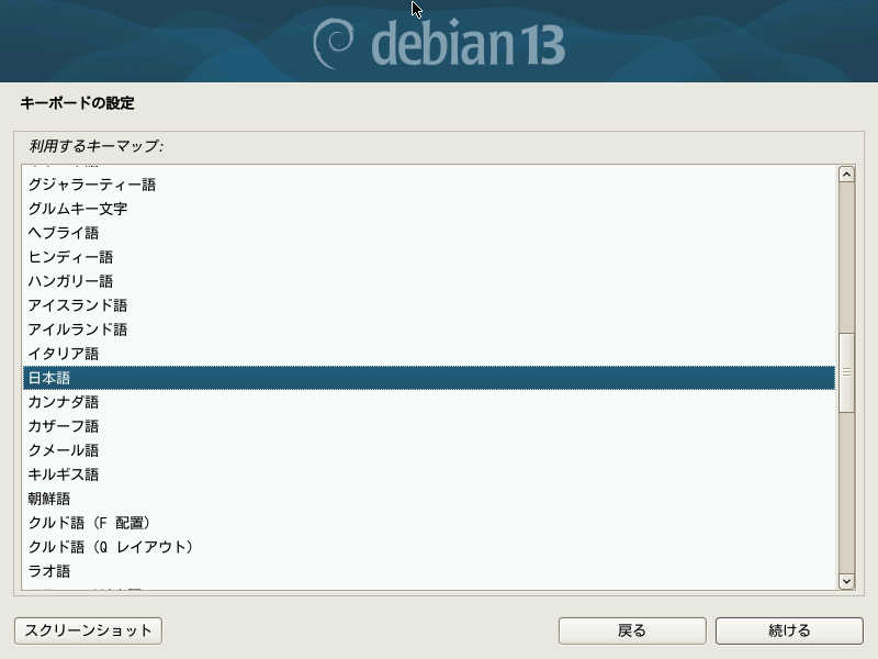 次にキーボードレイアウトを選択します。