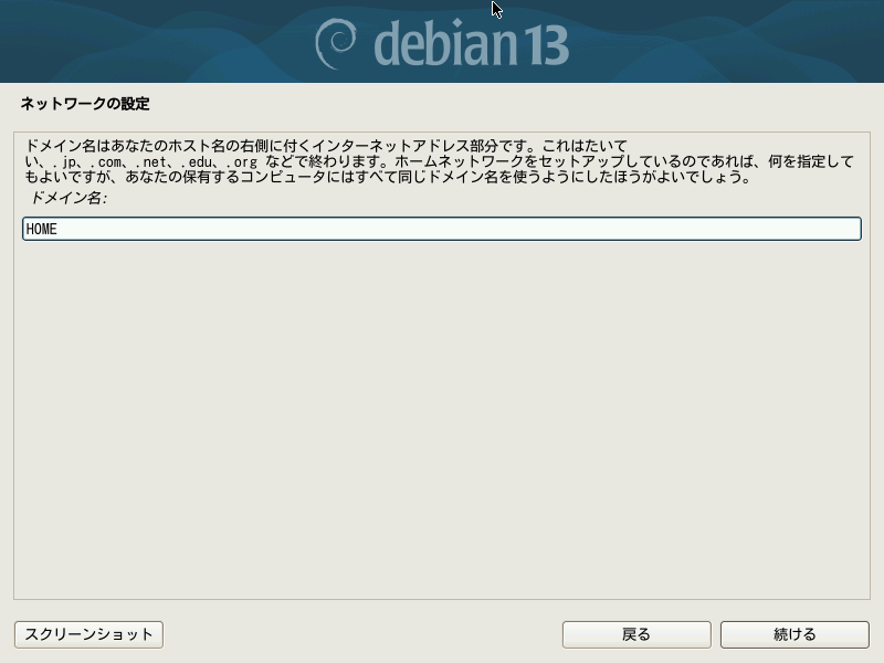 - ホスト名とドメイン名の設定
