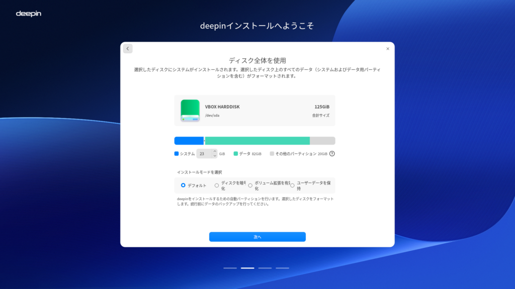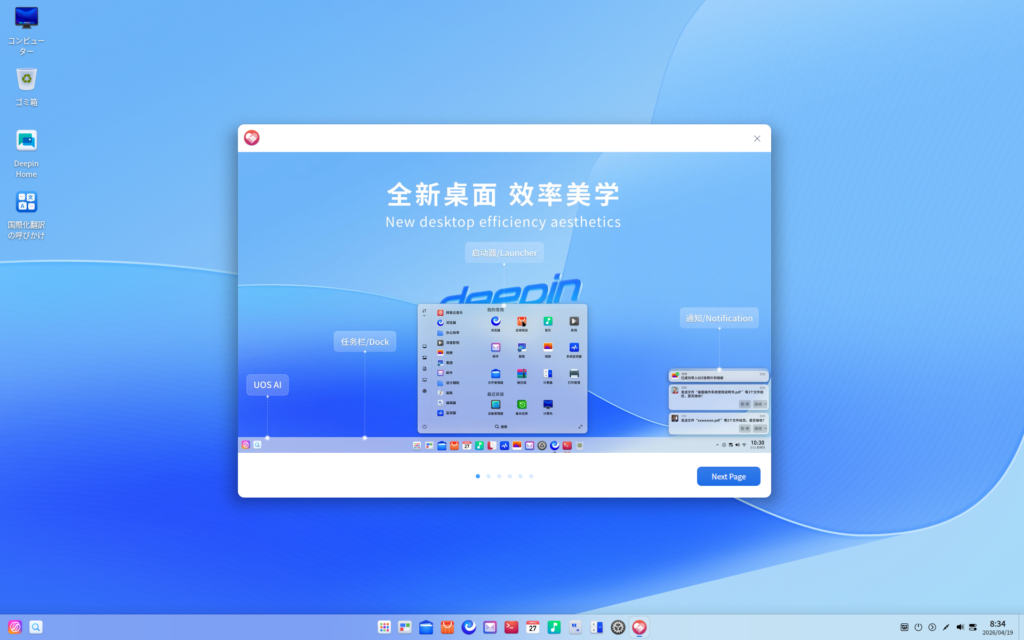 Deepin 25 DDE: インストール完了