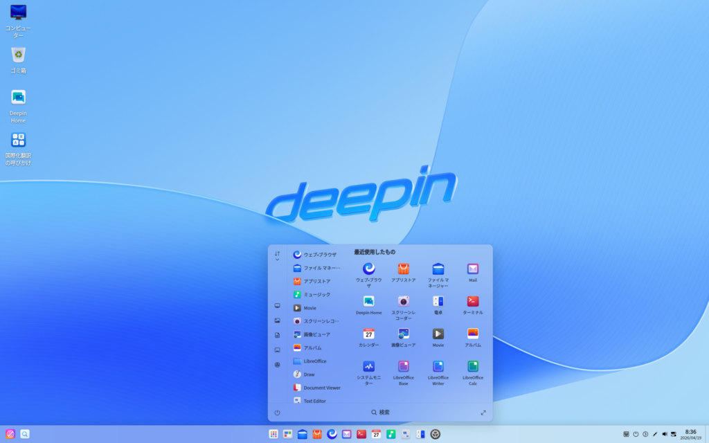 Fig.8-3: Deepin 25 DDE インストール後のスタートメニュー
