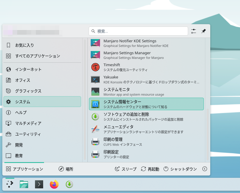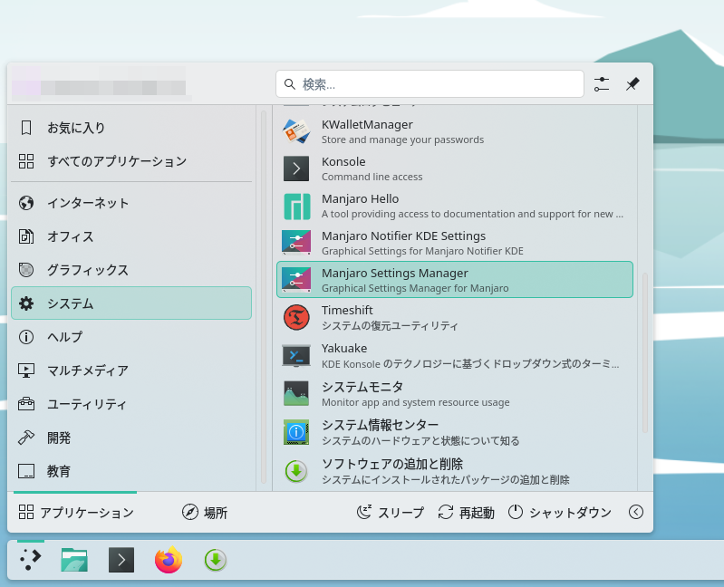 Fig.1-1: システム → Manjaro Setting Manager
