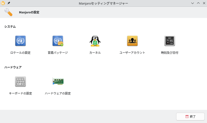 Fig.1-2: Manjaroセッティングマネージャー