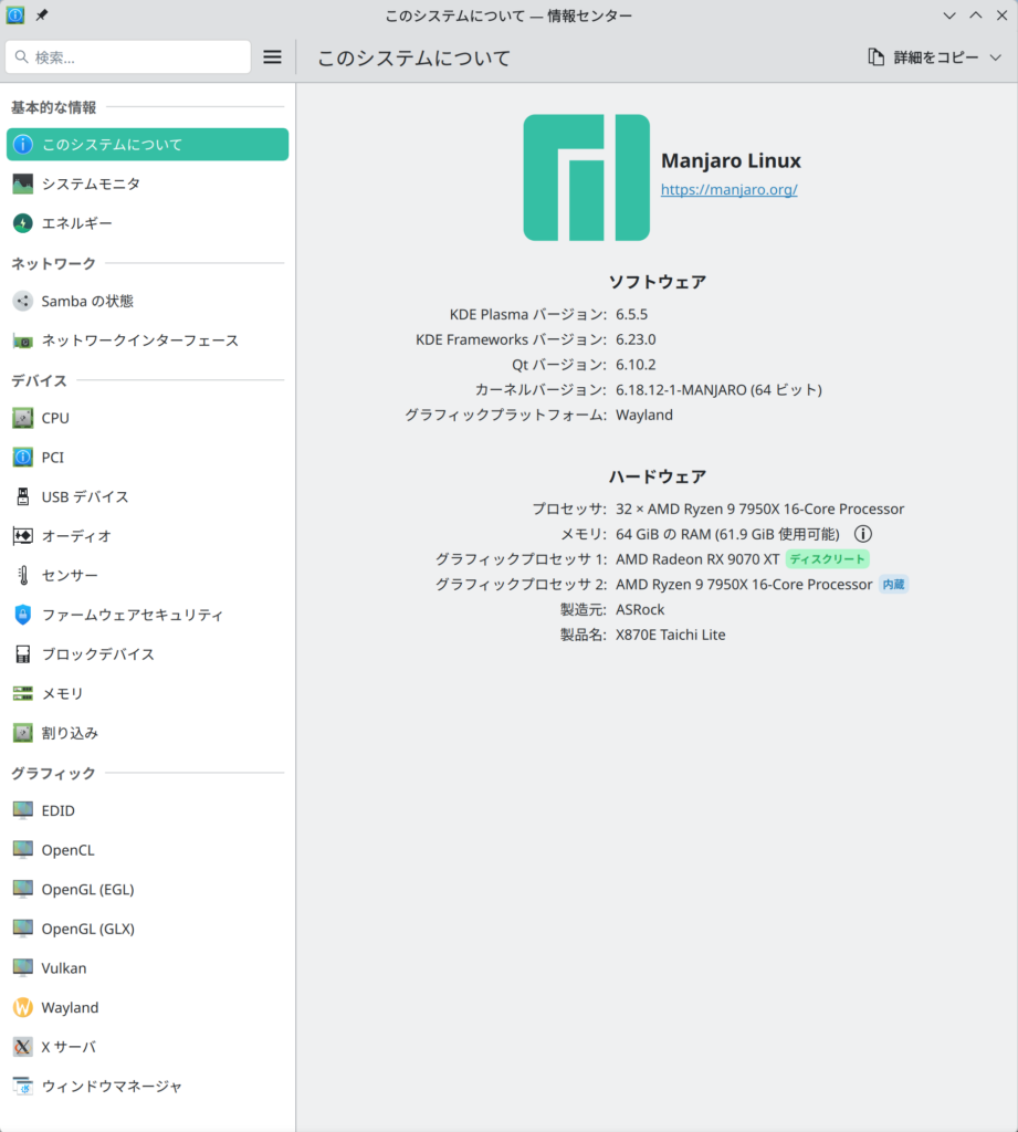 Manjaro KDE: カーネルのバージョン確認