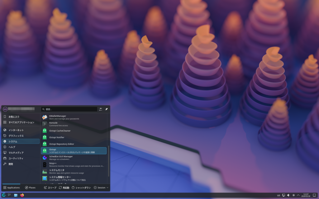 OpenSUSE TumbleweedはKDE Plasma版でもGNOME版でもパッケージマネージャの扱いが少々複雑で、複数のGUIパッケージマネージャがプリインストールされています。KDE Plasma版を例に挙げると、アプリケーションメニューの「システム」内には以下の6種類もの選択肢があります。
