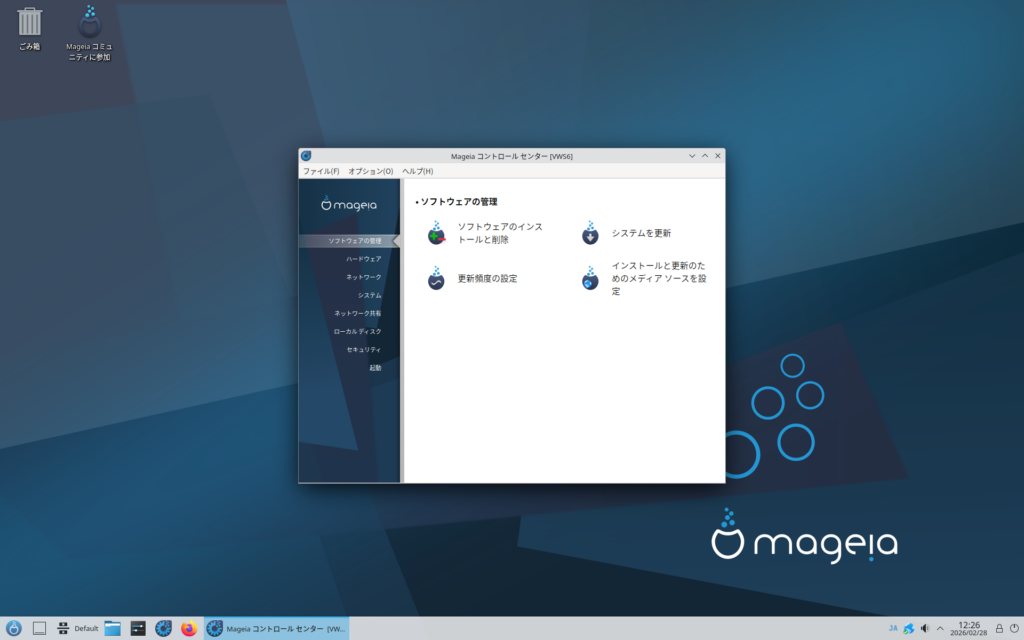 ここでソフトウェアの追加と削除、またアップデートを行うことができます。