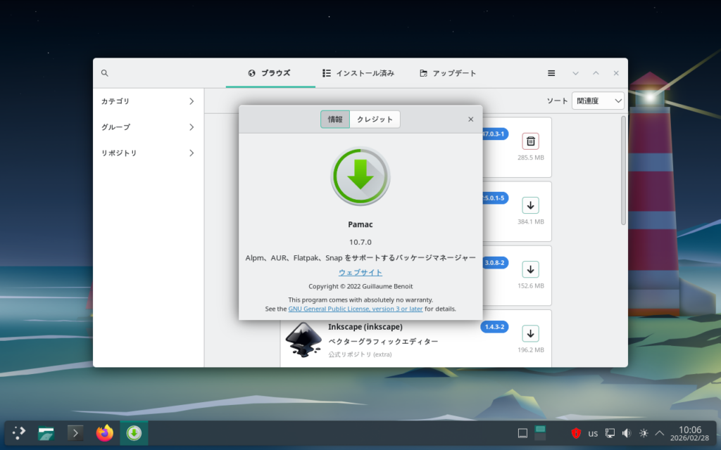 | Manjaro KDE | Pamac Ver10.7.0 |
