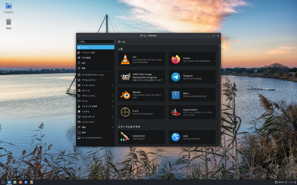 バージョン情報が右上に表示されており、まだ1.0.0と新しいソフトウェアであることがわかります。現段階ではDiscoverのほうが目立つタスクバー上にショートカットが初期配置されているなど暗黙のうちに推奨されているようにも感じますが、将来的にこのMyrlynの開発がより進み、日本語等の対応も進んだ際にはこちらがメインになるのかもしれません。
