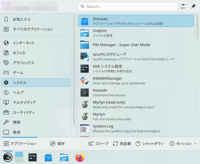 Fig.3-1: アプリケーションメニュー / システム → Discover