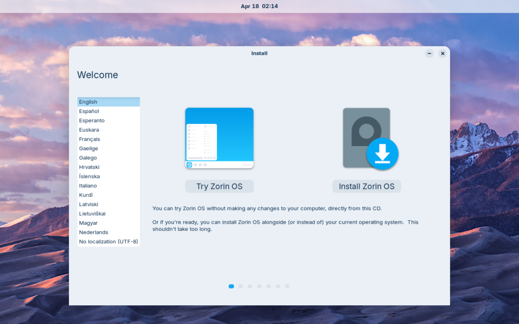 Liveモードが起動すると自動的にWelcomeダイアログが表示され、これがそのままインストーラにもなっています。