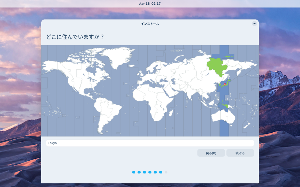 言語の選択で日本語を選んで進めた場合、自動的に地域はTokyoになっています。
