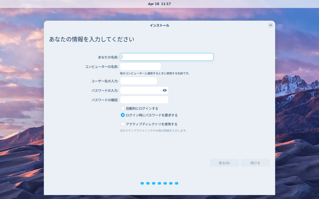 それぞれの項目を入力後、ボタン「続ける」を押して進めます。