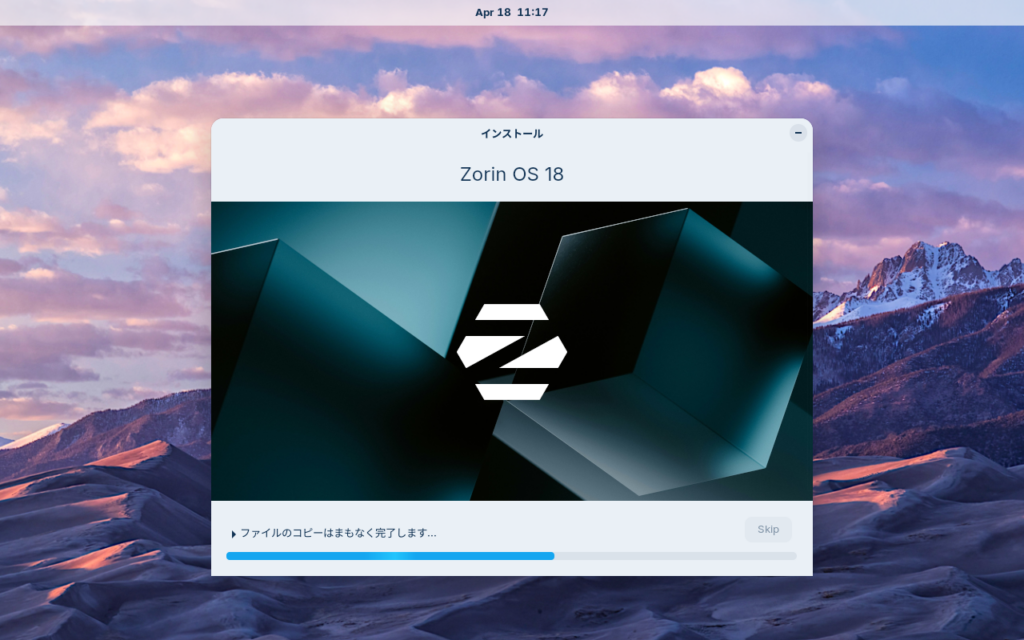 右側のボタン「Zorin OSをインストール」を押して進みます。