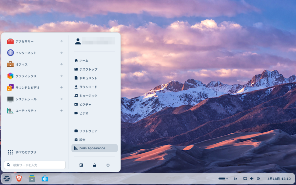 ZorinOSのデスクトップ用インストールメディア(兼・Live起動メディア)であるCore版はGNOMEデスクトップ環境専用になっています。まずはダウンロードしたisoイメージから起動してみましょう。